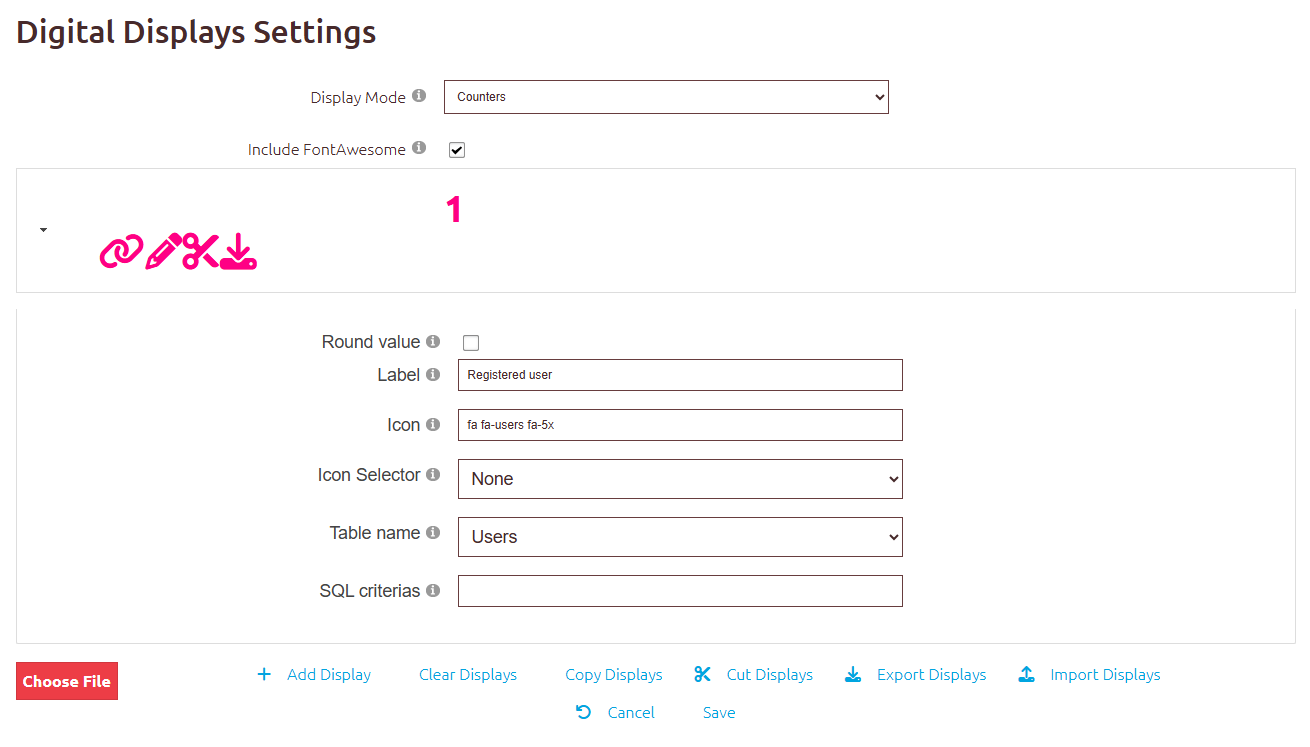 With features like approximation (rounding) and Font Awesome icon support, you can display your key metrics (e.g., "Registered Users", "Days until Event") in a clean and configurable way.