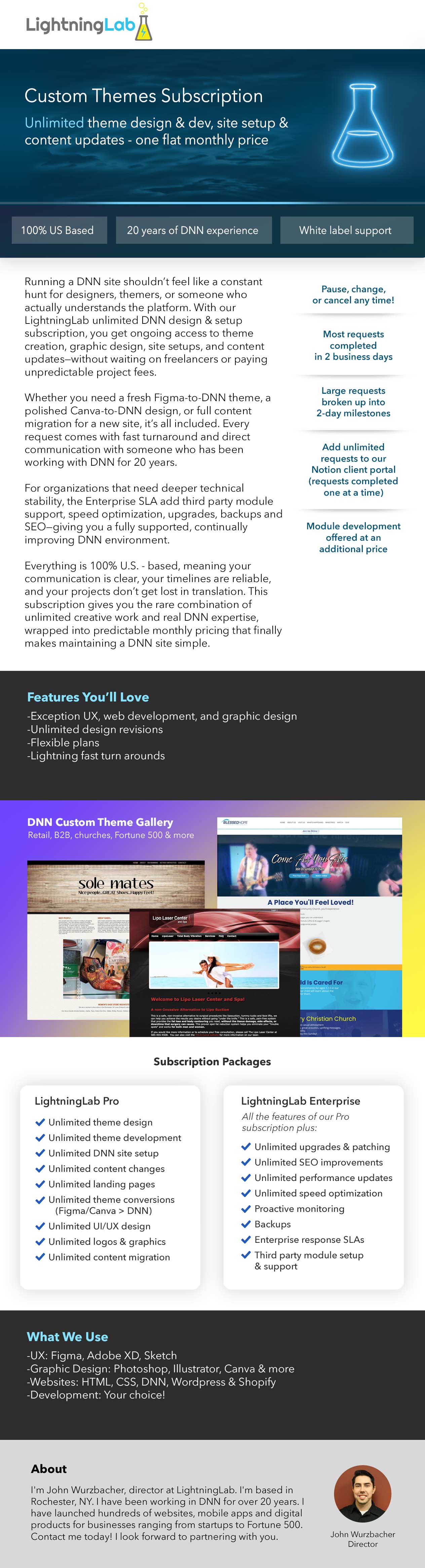 Links:Custom DNN Site 1Custom DNN Site 2LightningLab Solutions Portfolio